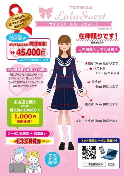 セーラー服は当店の在庫限りとなります。以後入荷しません、お早めにお願いいたします。
